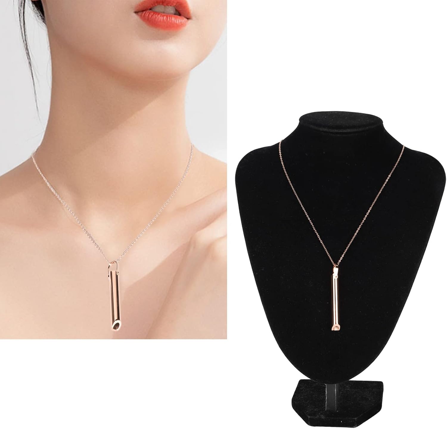 The Euphoria Breathing Necklace is crafted from premium titanium steel, ensuring durability and long-lasting use. It's available in four elegant colors: gold, black, rose gold, and silver.